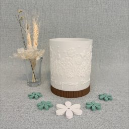 Das frühlingshafte Lithophan besteht aus drei Komponenten (Maße: ca. Ø 9,2cm, ca. H= 11,8cm):